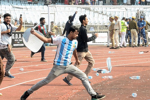 মুখে হাসি ধরে রাখার চেষ্টা করলেও স্পষ্ট অস্বস্তিতে ছিলেন মেসি। পরিস্থিতির ভয়াবহতা বুঝে তার ব্যক্তিগত নিরাপত্তারক্ষীরা আর ঝুঁকি নেননি। দ্রুত সিদ্ধান্ত নিয়ে মেসি, সুয়ারেজ, ডি পলদের মাঠ থেকে সরিয়ে নেওয়া হয়।