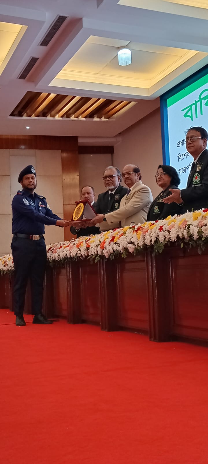 এক অনুষ্ঠানের মাধ্যমে মাননীয় উপদেষ্টা ও সাবেক ইন্সপেক্টর জেনারেল অব পুলিশ (আইজিপি) আশরাফুল হুদা এবং ঢাকা মেট্রোপলিটন পুলিশ (ডিএমপি) কমিশনার শেখ মোঃ সাজ্জাদ হোসেন তার হাতে এই সম্মাননা তুলে দেন।