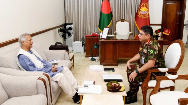 ডেস্ক নিউজঃ বাংলাদেশ সেনাবাহিনীর প্রধান জেনারেল ওয়াকার-উজ-জামান আজ সোমবার অন্তর্বর্তীকালীন সরকারের প্রধান উপদেষ্টা প্রফেসর মুহাম্মদ ইউনূসের সঙ্গে বিদায়ী সাক্ষাৎ করেছেন।