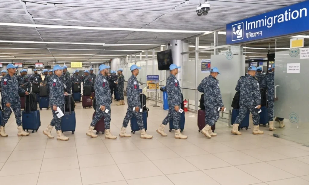 আইএসপিআর জানায়, আজ ঢাকা হযরত শাহজালাল আন্তর্জাতিক বিমানবন্দর ত্যাগ করেছে তারা। কন্টিনজেন্টটি ‘বাংলাদেশ ফোর্স মেরিন ইউনিট-১০’ এর প্রতিস্থাপক হিসেবে দক্ষিণ সুদানে দায়িত্ব পালন করবে। গত ৯ ডিসেম্বর ২০২৫ প্রথম গ্রুপে ৯৯ জন নৌসদস্য বর্ণিত শান্তিরক্ষী মিশনে যোগদান করেছে। জাতিসংঘের নির্দেশনা অনুযায়ী বিশ্ব শান্তি প্রতিষ্ঠায় নৌবাহিনীর ফোর্স মেরিন ইউনিট দক্ষিণ সুদানে নিয়োজিত রয়েছে। সুদানের প্রত্যন্ত এলাকায় নিত্য প্রয়োজনীয় জ্বালানি, খাদ্য সামগ্রী, ওষুধপত্র ও মানবিক সাহায্য বহনকারী বার্জগুলোর নিরাপদ চলাচলের নিশ্চয়তা বিধান, নৌপথের জলদস্যুতা পর্যবেক্ষণ ও নিয়ন্ত্রণ, অগ্নিনির্বাপণে স্থানীয় জনগণকে সহায়তা দিচ্ছে।