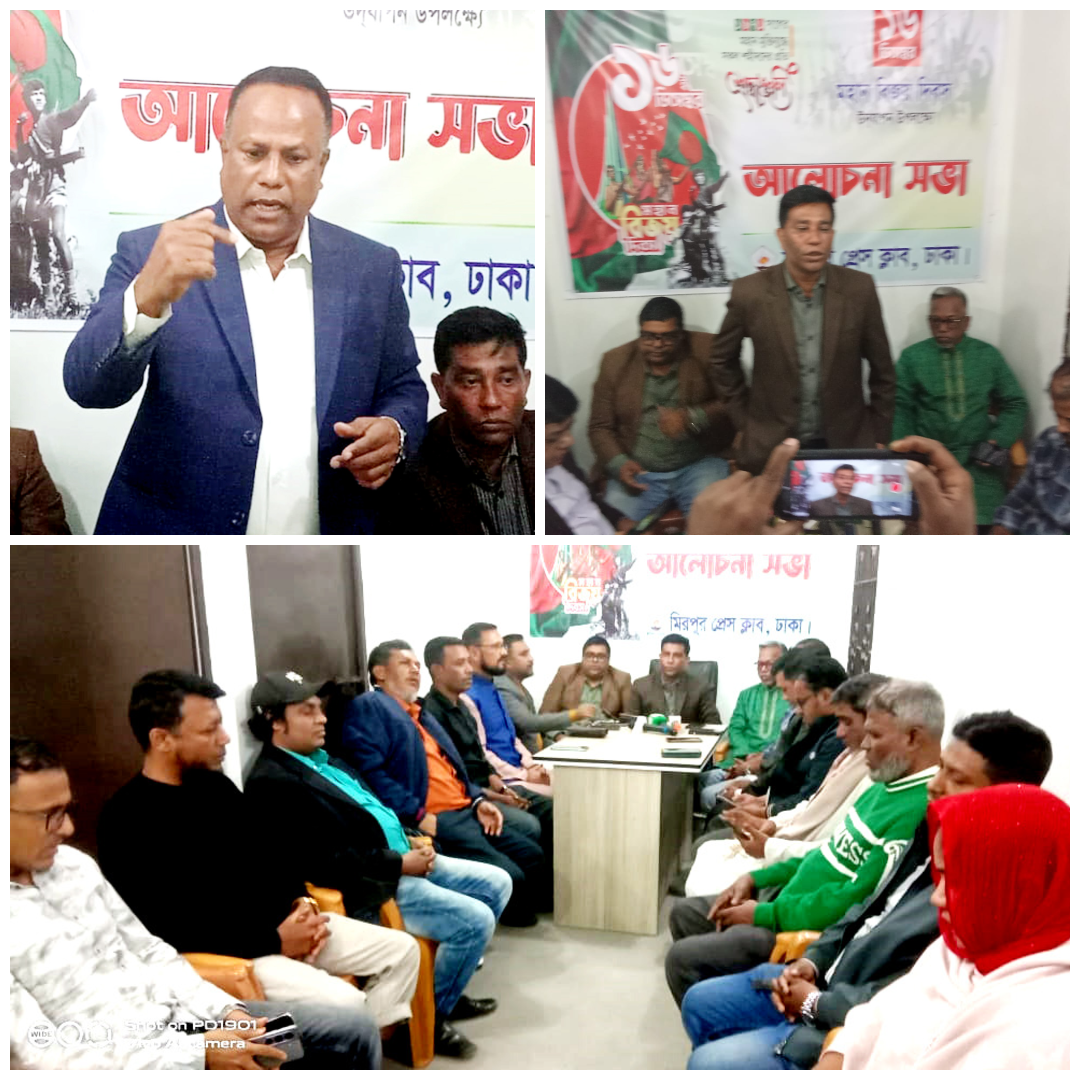 নিজস্ব প্রতিবেদকঃ ১৬ই ডিসেম্বর মহান বিজয় দিবস উপলক্ষে মুক্তিযুদ্ধে শহীদদের আত্মার মাগফিরাত কামনায় বিশেষ দোয়া মাহফিল ও আলোচনা সভার আয়োজন করে মিরপুর প্রেসক্লাব, ঢাকা। প্রেসক্লাব মিলনায়তনে অনুষ্ঠিত এই আয়োজনে মুক্তিযুদ্ধের ইতিহাস, ত্যাগ ও চেতনা নিয়ে গুরুত্বসহকারে আলোচনা করা হয়।